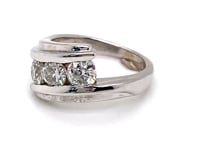 800-1768019K white gold three stone bypass diamond ring. 7.2 grams. 3 english cut diamonds, 1.00 total carat weight, VS2 clarity, HI color. Ring size 5.5.