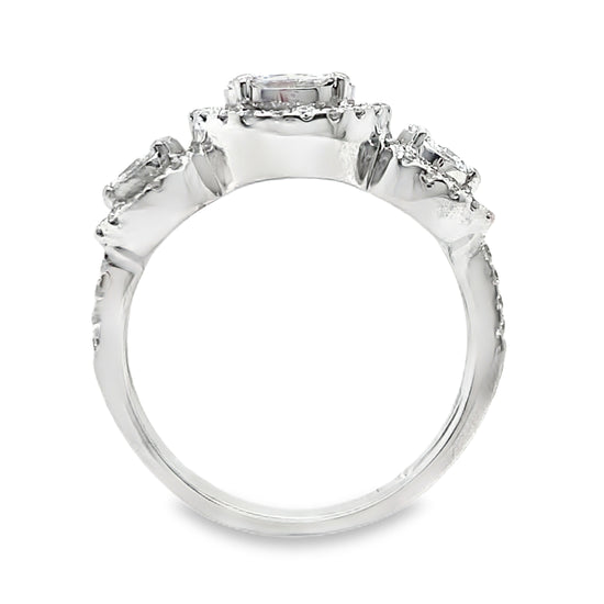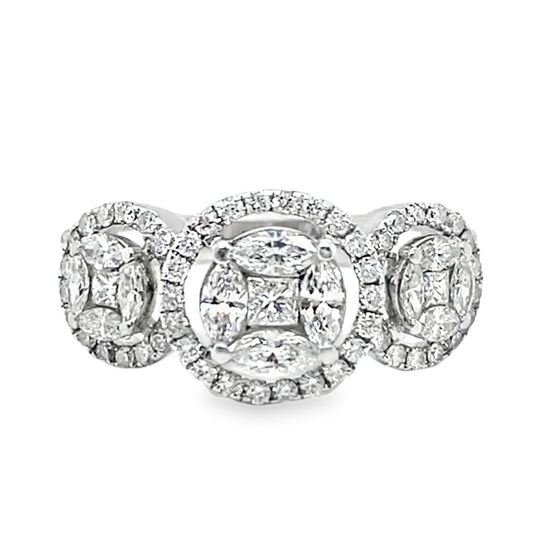 850-60018K white gold diamond cluster ring (marked 14K, but confirmed as 18K). 3.8 grams. Marquise, princess & round brilliant cut diamonds, 1.06 total carat weight, VS-SI1 clarity, GH color. Ring size 6.5.