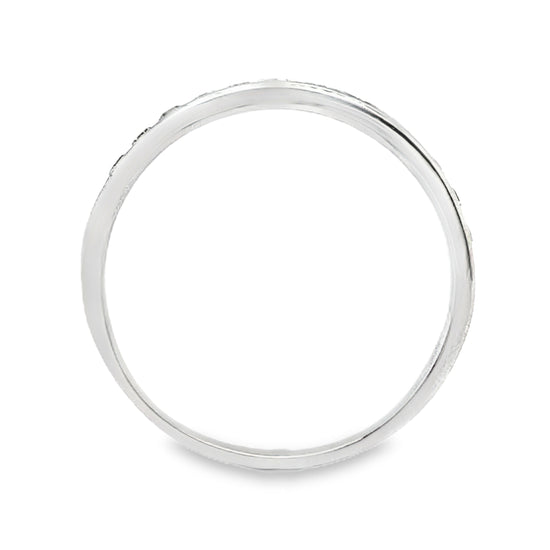 800-1814214K white gold diamond channel set band. 1.7 grams. 13 round brilliant cut diamonds, .20 total carat weight, SI clarity, IJ color. Ring size 7.