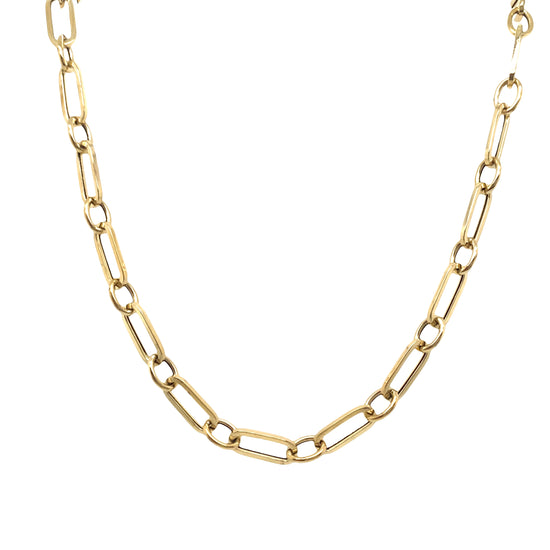 800-1822818K yellow gold oversized hollow paperclip link necklace. 8.1 grams, 5.5mm wide, 24 inches in length.