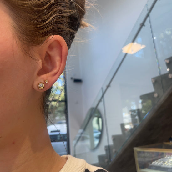A diamond stud, but make it gold intense. These simple studs have a bubbly, domey, lovely yellow gold bezel which has a decidedly modern vibe. These are the earrings you'll instinctively reach for when you're late to work, hate your entire wardrobe & on days that end in "y". They are just that good...you're welcome!