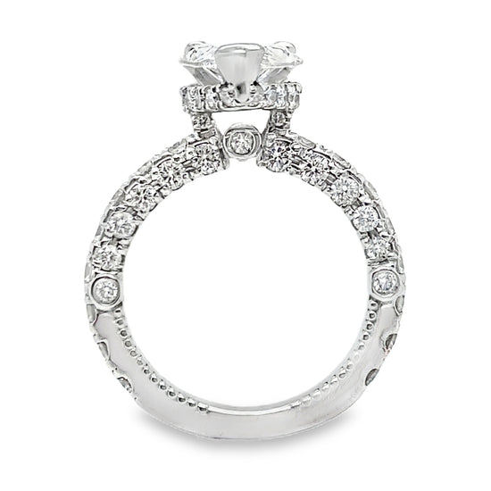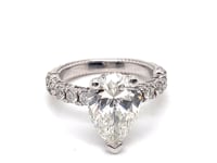850-56514K white gold diamond ring. 4.5 grams. One pear cut diamond, 3.01 carat, VS1 clarity, H color, laser inscribed "GIA 1428129855 & round brilliant cut side diamonds, 1.51pts, VS-SI clarity, FG color. 4.52 total carat weight. Ring size 5.