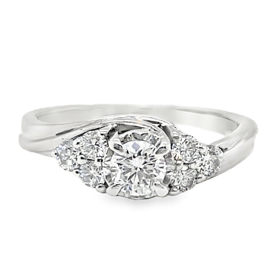 800-1841010K white gold diamond ring. 2.6 grams. Round brilliant cut diamonds, .45 total carat weight, SI clarity, FGH color. Ring size 4.75.