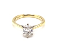 850-58314K yellow gold diamond solitaire ring. 3.2 grams. Set is one oval cut diamond, .90 carat, VS1 clarity, I color, GIA certificate & laser inscription. Ring size 6.5.
