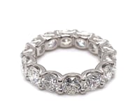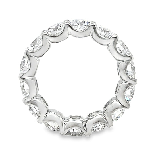 800-18333Platinum diamond eternity band. 9.5 grams. 14 round brilliant cut diamonds, 7.20 total carat weight, SI clarity, GHI color. Ring size 7.