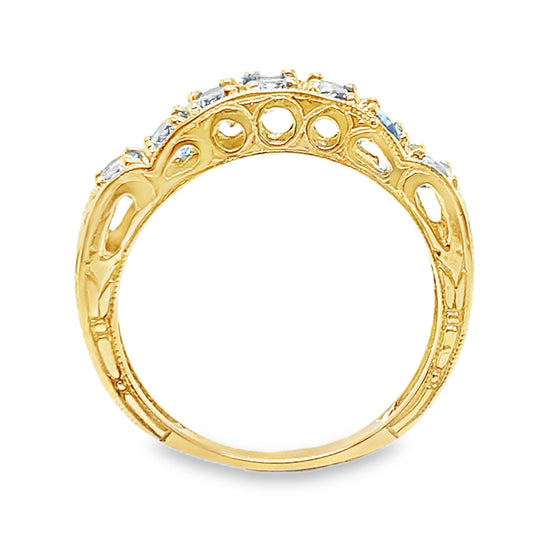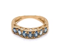 14K yellow gold aquamarine ring. 3.8 grams. Set are 7 oval cut aquamarine, 4x3mm. Ring size 8.