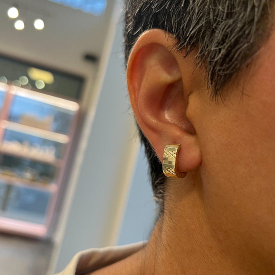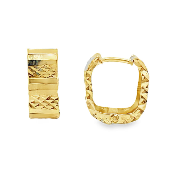 800-1825310K yellow gold diamond cut huggie style earrings. 1.9 grams. Approx. .5 inch in length.