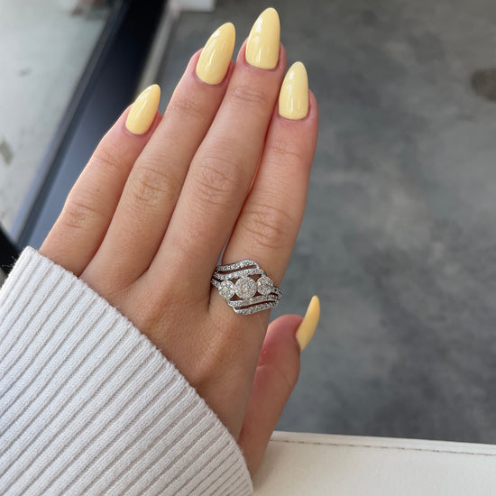 850-52910K white gold pave diamond ring. 4.2 grams. Round brilliant cut diamonds, 1.00 total carat weight, I clarity, HI color. Ring size 7.