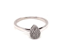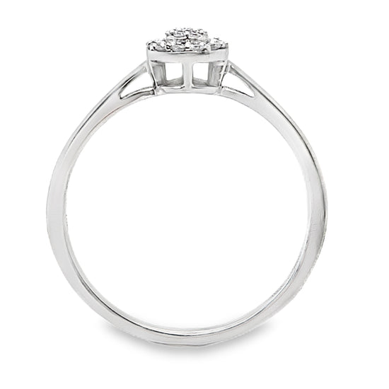 800-1767710K white gold pear cluster diamond ring. 1.8 grams. Round brilliant cut diamonds, .15 total carat weight, I clarity, GH color. Ring size 7.