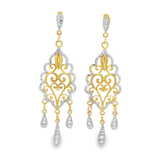 14K yellow & white vintage inspired chandelier earrings. 2.9 grams. 2 inches in length.